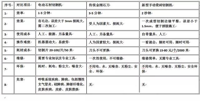 它可以直線切割各類瓷磚,有釉或無釉內外墻磚、地磚、立體磚、陶瓷板、玻化瓷制磚以及平板玻璃等。
