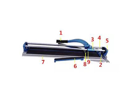 1.手柄 2.標尺 3.滑動座 4.滑軌 5.導軌座 6.支架 7.鋁合金底座 8.壓塊 9.刀輪