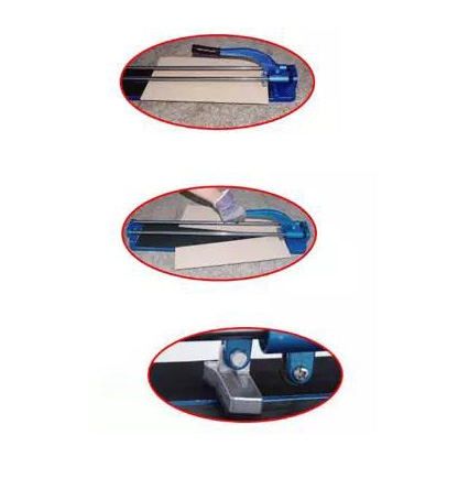 將操作手柄抬起稍向后拉,使壓塊平穩落放在瓷磚的前端。用適當的力將操作手柄向下壓,瓷磚將會沿著劃線斷開。